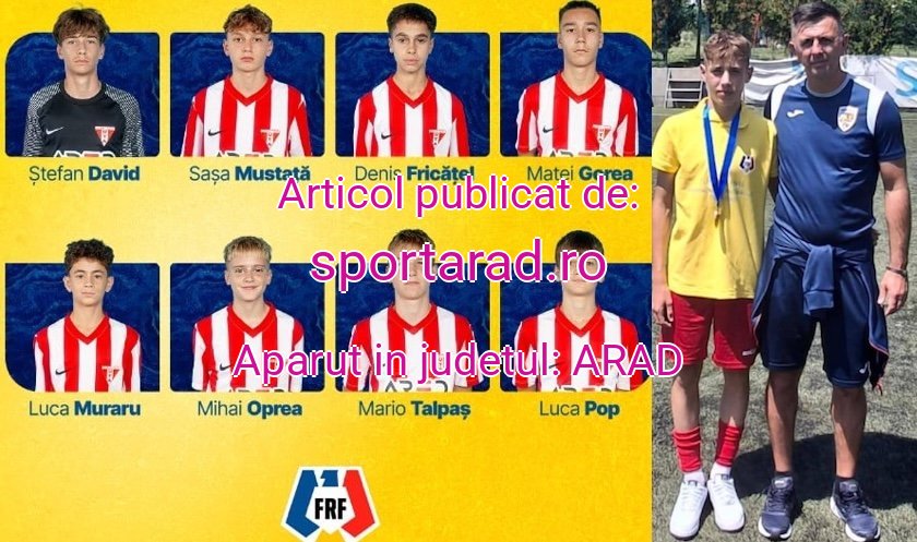 Orașul nostru pune în vitrină 8 jucători de la Academia UTA, peȘtefan David, Sașa Lucas Mustață, Denis Fricățel, Matei Nicolae Gorea, Luca Muraru, Mihai Ștefan Oprea, Mario Alexandru Talpaș șiși unul de la Viitorul,Darius Ciocondar. Grupa fotbaliștilor născuți în 2012 de la UTA e antrenată de Dinu Donca și Costel Bogoșel, iar cea de la Viitorul de Casian Maghici.