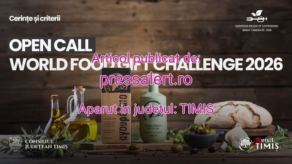 Asociația Visit Timiș a lansat oficial apelul de preselecție pentru producătorii artizanali din județeleTimiș, Arad și Caraș-Severin care doresc să participe la competiția internaționalăWorld Food Gift Challenge 2026 . Evenimentul este o componentă cheie în strategia de promovare a candidaturii Banatului la titlul deRegiune Gastronomică Europeană 2028 .