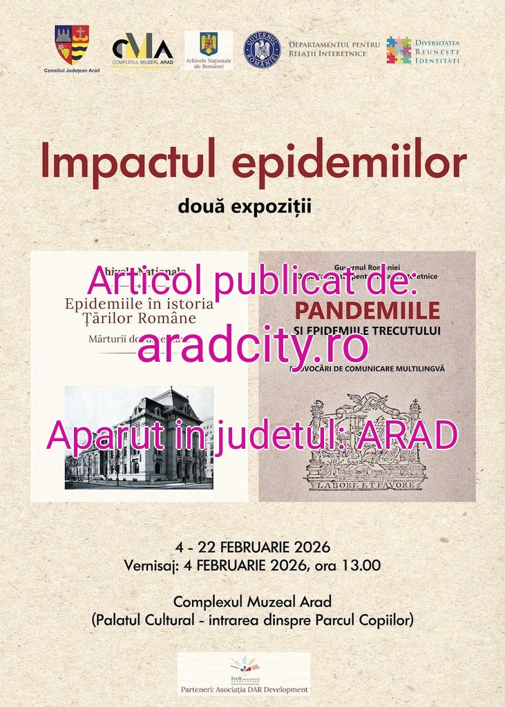 Cele două expoziții tematice dedicate impactului epidemiilor vor rămâne deschise la Complexul Muzeal Arad (Palatul Cultural – Piața George Enescu, nr. 1, intrarea dinspre Parcul Copiilor) până duminică, 22 februarie 2026.