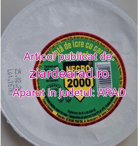 Potrivit Autorităţii Naţionale Sanitare Veterinare şi pentru Siguranţa Alimentelor, SC Negro 2000 SRL recheamă produsul Salată de icre cu caras şi ceapă 75 g, lot 167KT, cu data expirării 25.02.2026.