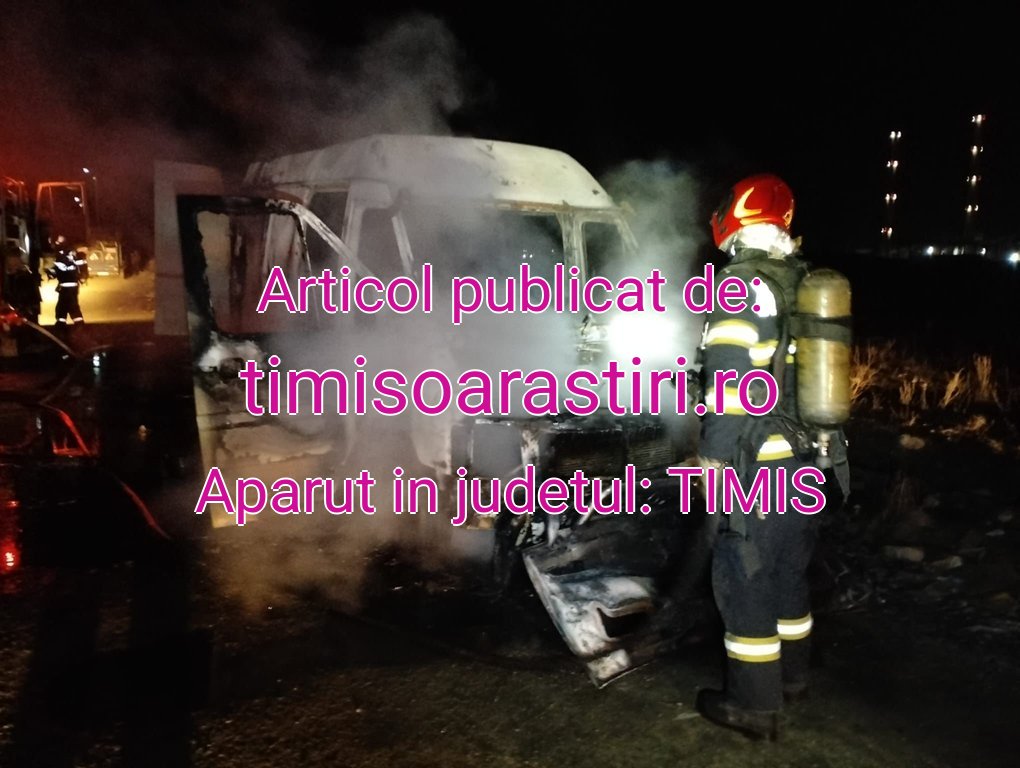 Incendiu izbucnit la un microbuz, lângă șoseaua de centură a municipiului Arad, în zona pasajului CET.