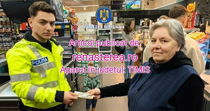 Într-una din zilele trecute, doamna Mihuț a sesizat polițiștii din Șiria, judeţul Arad, după ce a găsit suma de 2.170 de lei în parcarea unui supermarket din Galșa.