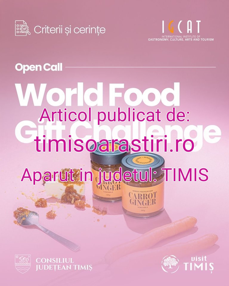 Produci delicii locale sau produse artizanale legate de gastronomie?Atunci aceasta este șansa ta să devii parte din povestea gastronomică a Banatului și să participi la World Food Gift Challenge 2026.O competiție organizată de @IGCAT Institutul Internațional pentru Gastronomie, Cultură, Arte și Turism, care celebrează cele mai bune produse alimentare și cadouri culinare artizanale din întreaga lume!APEL DESCHIS – PRESELECȚIE PRODUSE DIN BANATCăutăm 4 produse care să reprezinte Banatul la nivel european:• 2 produse culinare (cadouri culinare) și 2 produse artizanale legate de alimentație (cadouri artizanale)Cine poate aplica?Producători locali din Banat care realizează produse:• artizanale, nu industriale• realizate la scară mică, cu impact redus asupra mediului• care îmbină tradiția cu inovația• reprezentative pentru gastronomia și identitatea Banatului• disponibile pentru achiziție onlineCadouri culinareProduse alimentare sau băuturi locale, sigure pentru consum, realizate din ingrediente locale și naturale, potrivite pentru transport și comercializare. Ambalajul trebuie să fie sustenabil / eco-friendly.
